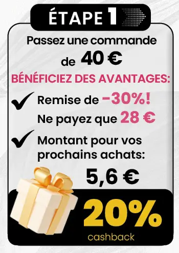 Activez votre compte avec une commande de 40 € (prix catalogue) et ne payez que 28 €. Vous récupérez déjà 5,6 € en cadeau pour vos futurs achats !
