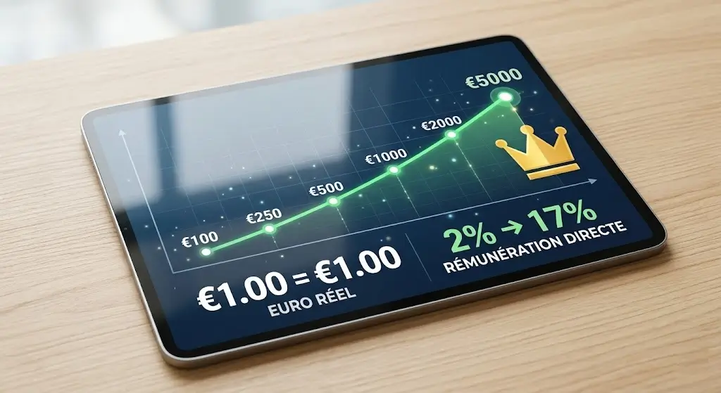 Oubliez les calculs complexes de points. Chez Mihi, vos commissions de 2% à 17% sont calculées directement sur le chiffre d’affaires réel en euros. C’est simple, transparent et sans coefficients cachés
